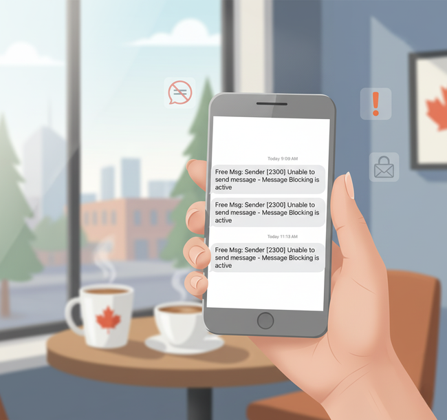 Canadian carriers like Bell and Rogers restrict messages from US-origin shortcodes as part of CWTA compliance requirements. This can prevent you from receiving two-factor authentication (2FA) codes from US-based financial institutions or services.